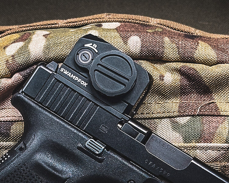 Swampfox uses a mounting system similar to the Aimpoint ACRO. This means an adaptor plate is needed to mount on a handgun, but don’t worry, you get two in the box. Swampfox provides one for the popular RMR and one MOS plate for Glock handguns.